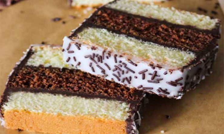 Lasati sa se raceasca si taiati blaturile la aceeasi dimensiune. Puneti un blat cu vanilie pe care intindeti crema de ciocolata, peste care puneti blatul de cacae, din nou crema si blatul de vanilie care a mai ramas.