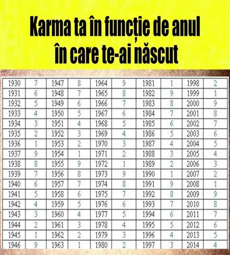Reîncarnându-se încă o dată, sufletul îi aduce omului încercări speciale, probleme karmice, scrie virale.ro. Cu ajutorul atrologiei Mewa, care se bazează pe un sistem de 9 numere, fiecare număr indică a câta oară sufletul s-a reîncarnat.